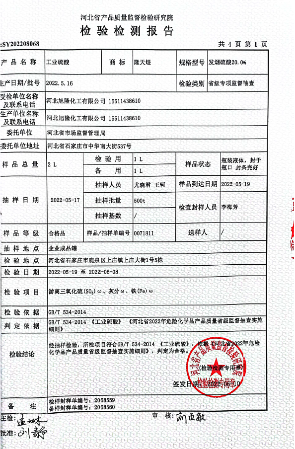 銷售硫酸: